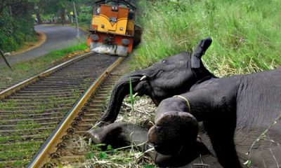 The Habarana Police yesterday said that train had derailed at Hathares Kotuwa in Habarana after knocking down two wild elephants.The two elephants died. None of the...