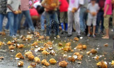 I was watching Sri Lanka TV news and saw protestors smashing coconuts near #nodealgama. Is that an advanced Buddhist practice we learnt at school? Or is...