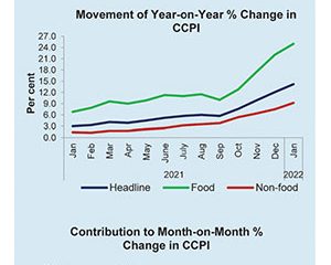 Headline inflation, as measured by the year-on-year (Y-o-Y) change in the Colombo Consumer Price Index (CCPI, 2013=100)1, increased to 14.2 per cent in January 2022 from...