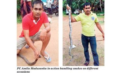 ‘Our planet needs these living beings for survival’ by Suresh Perera Catching venomous reptiles is child’s play to Amila Madusanka, a serving policeman in Wanduramba, whose...
