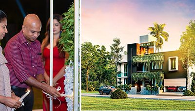 Lighting of the oil lamp at the launch of Clover by Prime Signature Villas, Thalawathugoda by the chairman Brahmanage Premalal and Co – Chairperson Sandamini Perera...