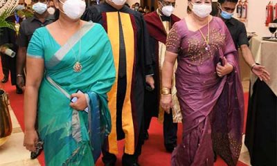 Former First Lady Shiranthi Rajapaksa and Health Minister Pavitra Wanniarachchi arriving at the BMICH for the recent installation of Dr. Pradeep de Silva as the President...