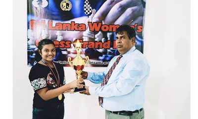 Sanudula Dahamdi of Musaeus College receiving the trophy from Lakshman Wijesuriya, the president of the Chess Federation of Sri Lanka. Fourteen-year- old Sanudula Dahamdi of Musaeus...