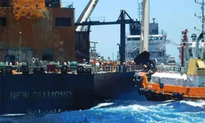 International salvage experts boarding the fire-stricken oil tanker, New Diamond, in the Indian Ocean off Sri Lanka’s eastern coast.(Photo: Sri Lanka Navy) The Sri Lanka Air...