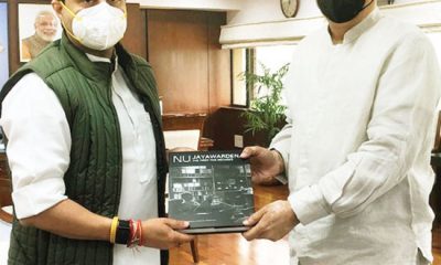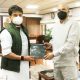 Lankan High Commissioner in New Delhi Milinda Moragoda presented a copy of the biography of his late grandfather Deshamanya N.U. Jayawardena to Jyotiraditya Scindia, Indian Civil Aviation...