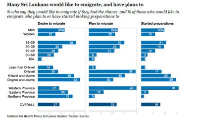 About 27% of Sri Lankans would like to emigrate if they got opportunities, Sri Lanka Opinion Tracker Survey (SLOTA) conducted by the Institute for Health Policy...