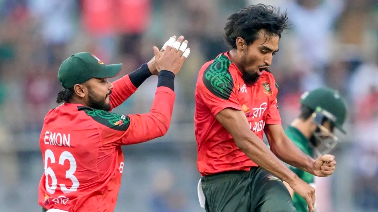 Pakistan’s batting collapse actually started after a dropped catch. Taskin spilled an easy chance at short fine leg after Fakhar had top edged a slog sweep in the first over. Taskin’s guilt was short lived as he removed Saim Ayub in the next over, caught at long leg.