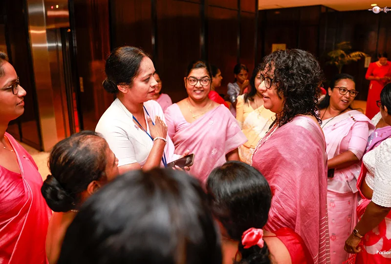 Chairperson of the Indira Cancer Trust, Dr. Lanka Jayasuriya Dissanayake, speaking with Prime Minister Dr. Harini Amarasuriya at an event held in Parliament yesterday (22) to highlight the importance of the cancer awareness month, also known as Pink month.