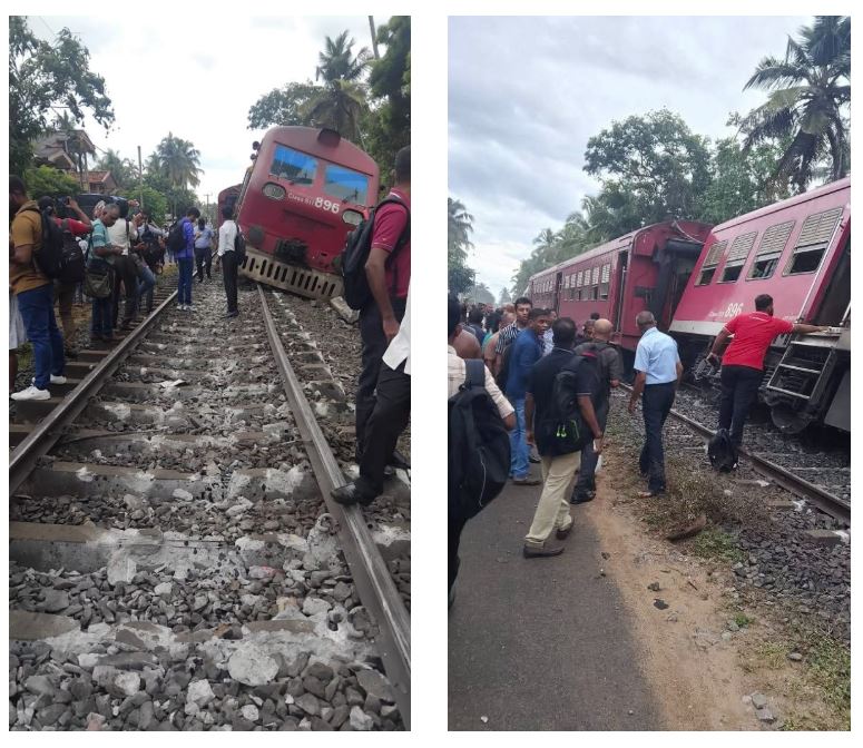 The ‘Sagarika’ train, operating from Beliatta to Maradana, derailed near the Wadduwa Railway Station on Friday morning (24), causing severe damage to one track of the dual-line section.