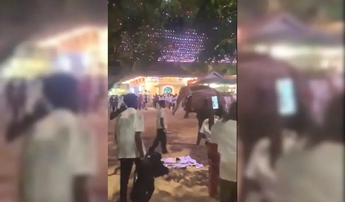 About 13 people were injured on Saturday night (06) when an elephant went on the rampage during the Ruhunu Kataragama Maha Devalaya procession.The injured are being treated at the Kataragama Hospital.Police have urged people not to make loud noises during processions to ensure that elephants remain calm.
