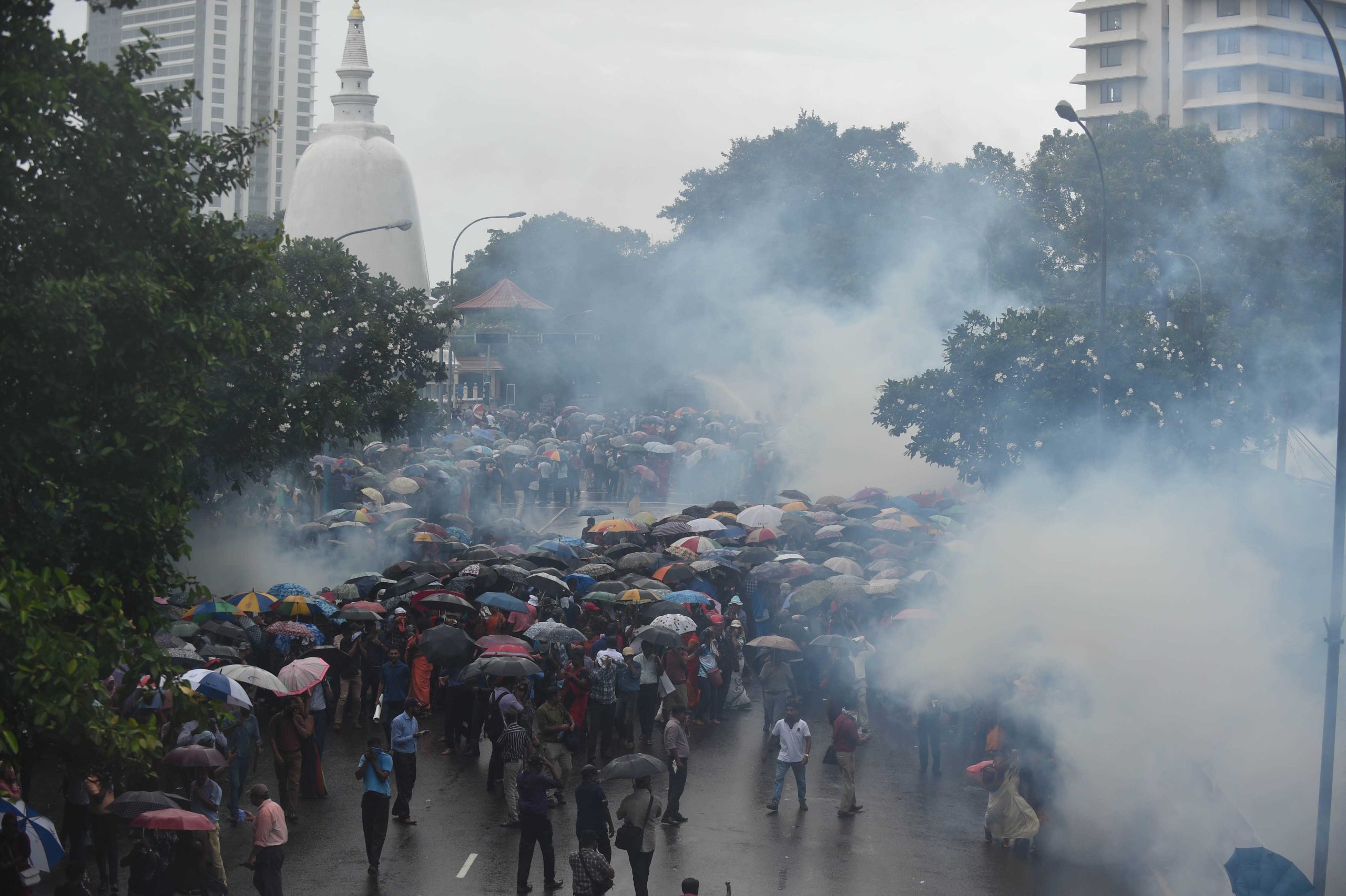 The police used water cannons and fired tear gas to disperse a protest march by Principal’s and Teacher trade unions while they were attempting to march towards the Presidential Secretariat this [26] afternoon.
