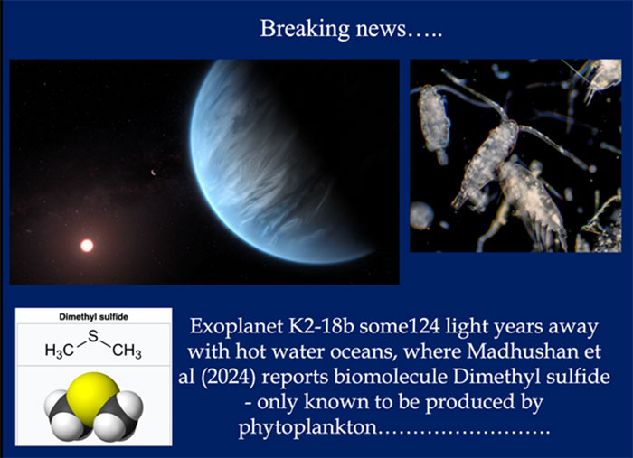 Similarly, the conventional scientific theory (the Western scientific dogma) of how life began on Earth in a primordial soup of chemicals is coming under serious challenge from a wide array of new data. The latest new data has come from the James Webb Space Telescope that has shown that a planet around a distant star (124 light years away) that has hot-water oceans containing a molecule called Dimethyl sulphide that is only known to be produced by microorganisms. This recent data is presented in the scientific literature and international media, deliberately omitting any reference to over four decades of similar claims made by the present writer and Fred Hoyle.