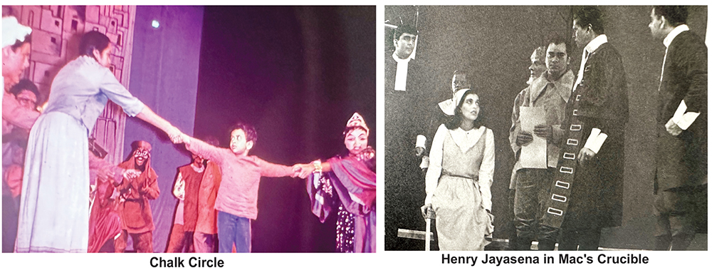 The very first production of a Brecht play in Lanka was by Professor E.F. C. Ludowyk (Professor of English at Peradeniya University from 1933 to 1956) who developed the Drama Society that pre-existed his time at the University College by expanding the play-reading group into a group of actors. This fascinating history is available through the letter sent in 1970 to Shelagh by Professor Ludowyk late in his retirement in England. In this letter he says that he produced Brecht’s The Good Woman of Szechwan with the Dram Soc in 1949. Shelagh who was directed by Professor Ludowyk also informs us elsewhere that he had sent from England a copy of Brecht’s Caucasian Chalk Circle to Irangani (Meedeniya/Serasinghe) in 1966 and that she in turn had handed it over to Mac, who then produced it in a celebrated production with her in the role of Grusha, which is what opened up the two way-street between the English language theatre of the Wendt and the Lumbini Theatre in Sinhala. Henry Jayasena in turn translated the play into Sinhala, making it one of the most beloved Sinhala plays. Mac performed in Henry’s production as the naughty priest who has the memorable line which he was fond of reciting for us in Sinhala; ‘Dearly beloved wedding and funeral guests, how varied is the fate of man…’. The idiomatic verve of Henry’s translation was such that people now consider the Caucasian Chalk Circle a Sinhala play and is also a text for high school children, I hear. Even a venal president recently quoted a famous line of the selfless Grusha in parliament assuming urbanely that folk knew the reference.