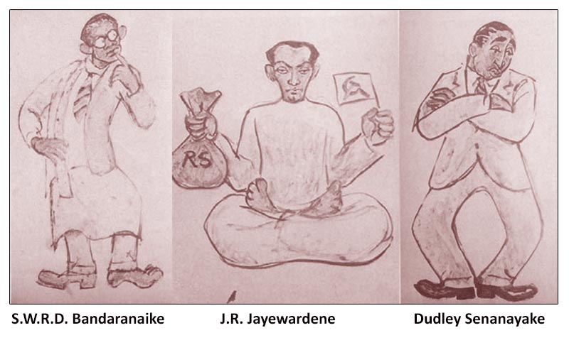 His fate, however, was to be linked to a chain of political events that took place in the 1950s, beginning with the death of Sri Lanka’s first Prime Minister, D.S. Senanayake, and eventually culminating in the overwhelming defeat of the UNP and the landslide victory of the Mahajana Eksath Peramuna (MEP) coalition headed by S.W.R.D. Bandaranaike in 1956.