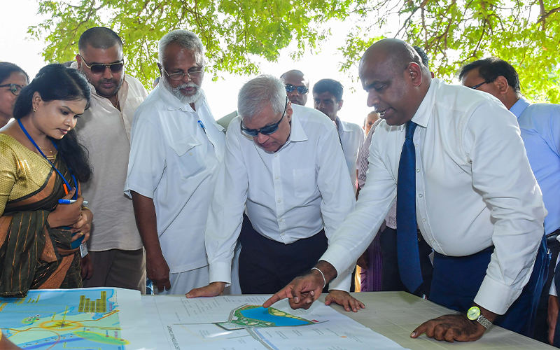 During his official four-day visit to the Northern Province, President Ranil Wickremesinghe paid a visit to the Pooneryn area on Friday (05) and participated in a discussion at the Pooneryn Divisional Secretariat to assess the Pooneryn Town Development Plan presented by the Urban Development Authority.