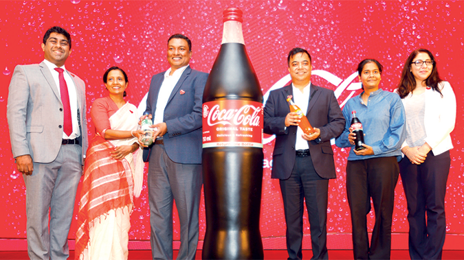 Coca-Cola Sri Lanka this week unveiled i its new glass bottle packaging, the ‘Big Buddy Bottle’, which will keep both the pocket and planet happy. Coca-Cola Beverages Sri Lanka Managing Director Deepak Senthil Nath (left) and Coca-Cola Sri Lanka and the Maldives Managing Director Pankaj Sinha unveil new look of evolved Coca-Cola bottle