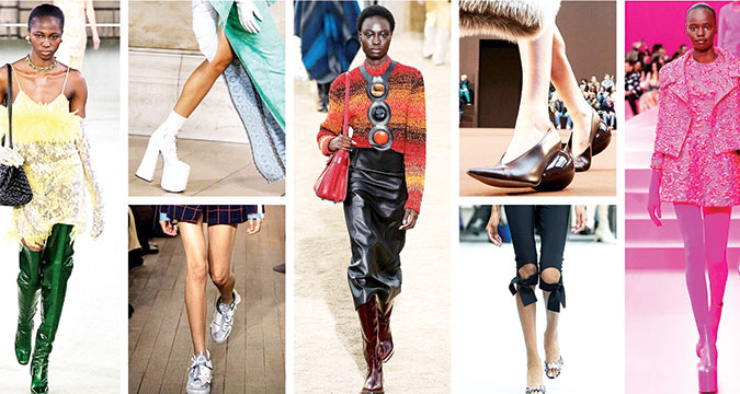 Sky-High Platforms The platform was the runaway trend of the season, with almost every designer offering a vertical lift. From Valentino’s sky-high PP Pink platforms that Anne Hathaway just stomped around Rome in to Versace’s patently sexy take, there was no shortage of leg-lengthening, view-altering heels. Add a pair of socks to carry you through the cold months.