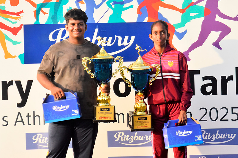 Sprinter Nimshi Ruwasha Ekanayake of Dharmapala College, Pannipitiya and thrower Duvidu Warnitha Gamage of Mahasen National School, Bakamuna were adjudged the most outstanding athletes in the girls’ and boys’ categories respectively at the Sir John Tarbat Junior Athletics Championship which concluded at Mahaweli Ground, Embilipitiya on Monday.
