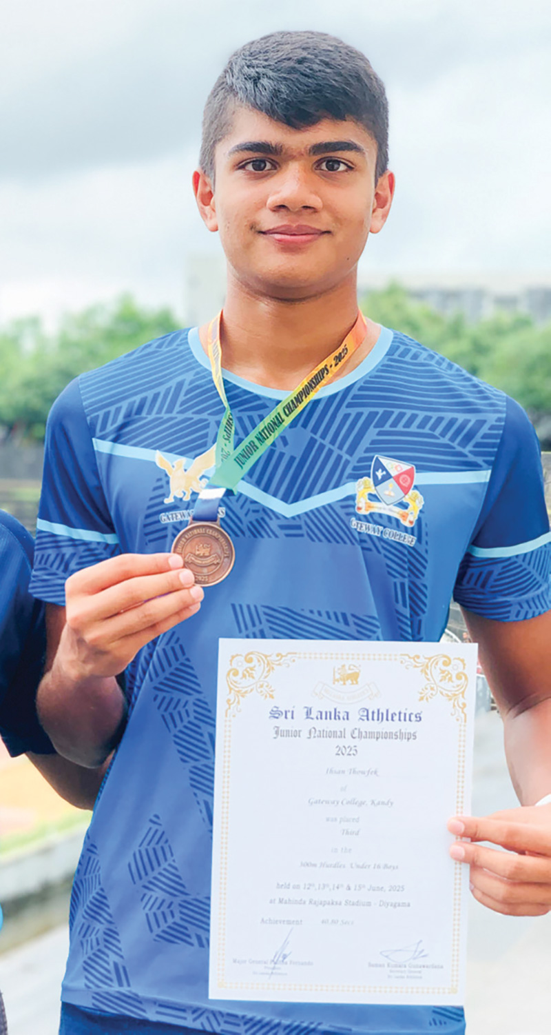 Gateway College, Kandy made their presence felt at top national track and field events with at least three athletes winning podium places in 2025.The victories of Saad Faleel, Ihsan Thowfeek and Sakith Edirisinghearachchi have come as no surprise after the athletes of the International School came under the tutelage of reputed sprint coach Asanka Rajakaruna.