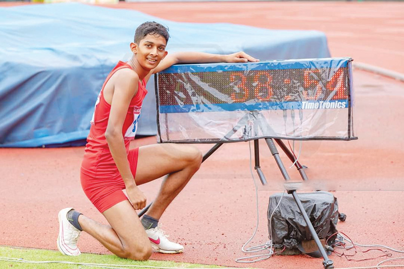 Saad commenced the season with a 10.94 seconds feat at the Open National trial in January where he was eliminated in the heats with a fourth place finish. But from there on the gradual rise in performance saw him bag title after title in his age category from Kandy Zonal meet, Central Province Schools Games meet to Sir John Tarbat Championship. He won gold at both the Sir John Tarbat Senior and All Island Schools Games events but the 100 m title at the Sir John Tarbat Senior meet was the icing on the cake considering the outstanding timing.