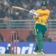 This pitch wasn’t a complete featherbed, with the ball occasionally stopping on the batters and making them mistime shots. Two members of South Africa’s top three, Reeza Hendricks and Aiden Markram, scored 37 off 36 balls between them.