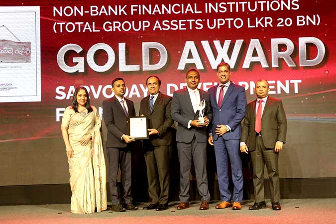 In recognition of its commitment to and excellence in Transparency, Accountability, Governance and Sustainability (TAGS) reporting, Sarvodaya Development Finance PLC, one of Sri Lanka’s leading licensed development finance companies, was presented with a Gold Award at the TAGS Awards, conducted by the Institute of Chartered Accountants of Sri Lanka. The award was presented to Sarvodaya Development Finance PLC (SDF) at the TAGS Awards Ceremony, held at the Shangri La Hotel Colombo, on the 6th of December 2022. Nilantha Jayanetti, CEO, and Mahesh Jayasanka, Chief Manager Finance accepted the award on behalf of SDF.