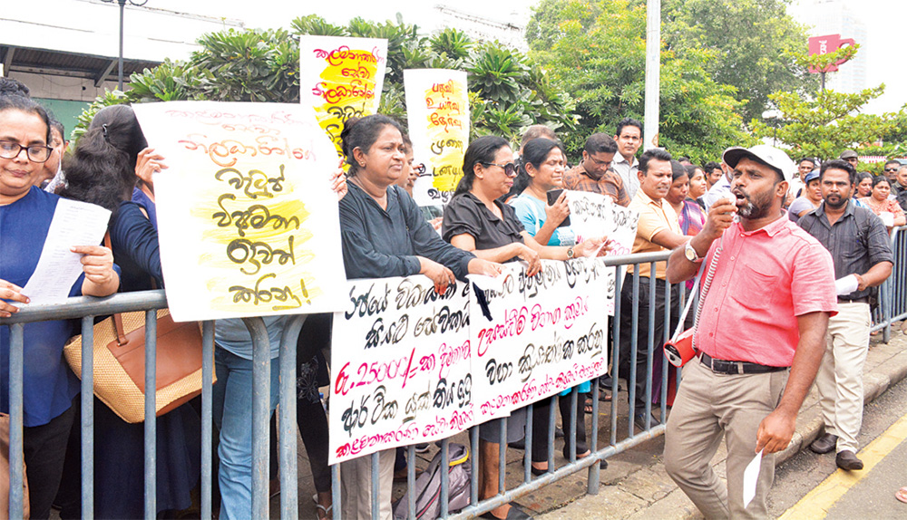 Co-convener of the Collective Chandana Sooriyarachchi said that around 300 trade unions in the public sector, representing Grama Niladharis and surveyors among others, had commenced the sick-note campaign demanding a 25,000-rupee allowance.