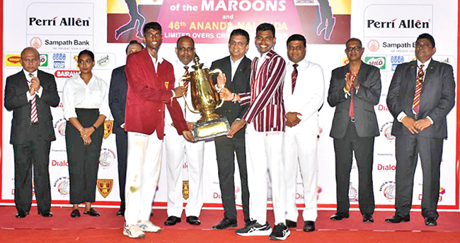 For Nalanda Eranga Jayakodige did well in the batting department top scoring with 83 runs. After they were put to bat Nalanda lost three wickets but the middle order lived up to their reputation to post their eventual total.