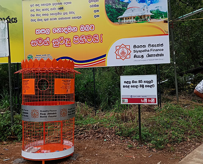 Under the guidance of Chief Incumbent of Sri Pada, Most Venerable Bengamuwe Dhammadinna Thera and with permission and support of former Nuwara Eliya District Secretary, Nandana Galaboda, Siyapatha Finance PLC effectively installed hoardings and placed waste disposal bins from Nallathanniya up to the Peak of Sri Pada in an effort to raise awareness on the effects of continuous littering and importance of polythene and plastic waste management. The waste disposal bins were especially placed to encourage the general public to follow proper waste management practices and dispose polythene and plastic waste in a sustainable manner.