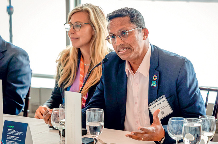 At the United Nations Private Sector Forum in New York, Dilhan C. Fernando, CEO & Chairman of Dilmah Tea and Chairman of UN Global Compact (UNGC) Network Sri Lanka, represented Sri Lanka with Supun Weerasinghe, CEO of Dialog Axiata and Rathika de Silva, Executive Director of Global Compact Network Sri Lanka. The two CEOs and Network Director were the first Sri Lankans to be invited by UN Secretary General Antonio Guterres to the prestigious gathering. The Forum took place alongside the UN General Assembly with global leaders, CEOs, and policymakers meeting during a pivotal moment for the United Nations as it marks its 80th year.