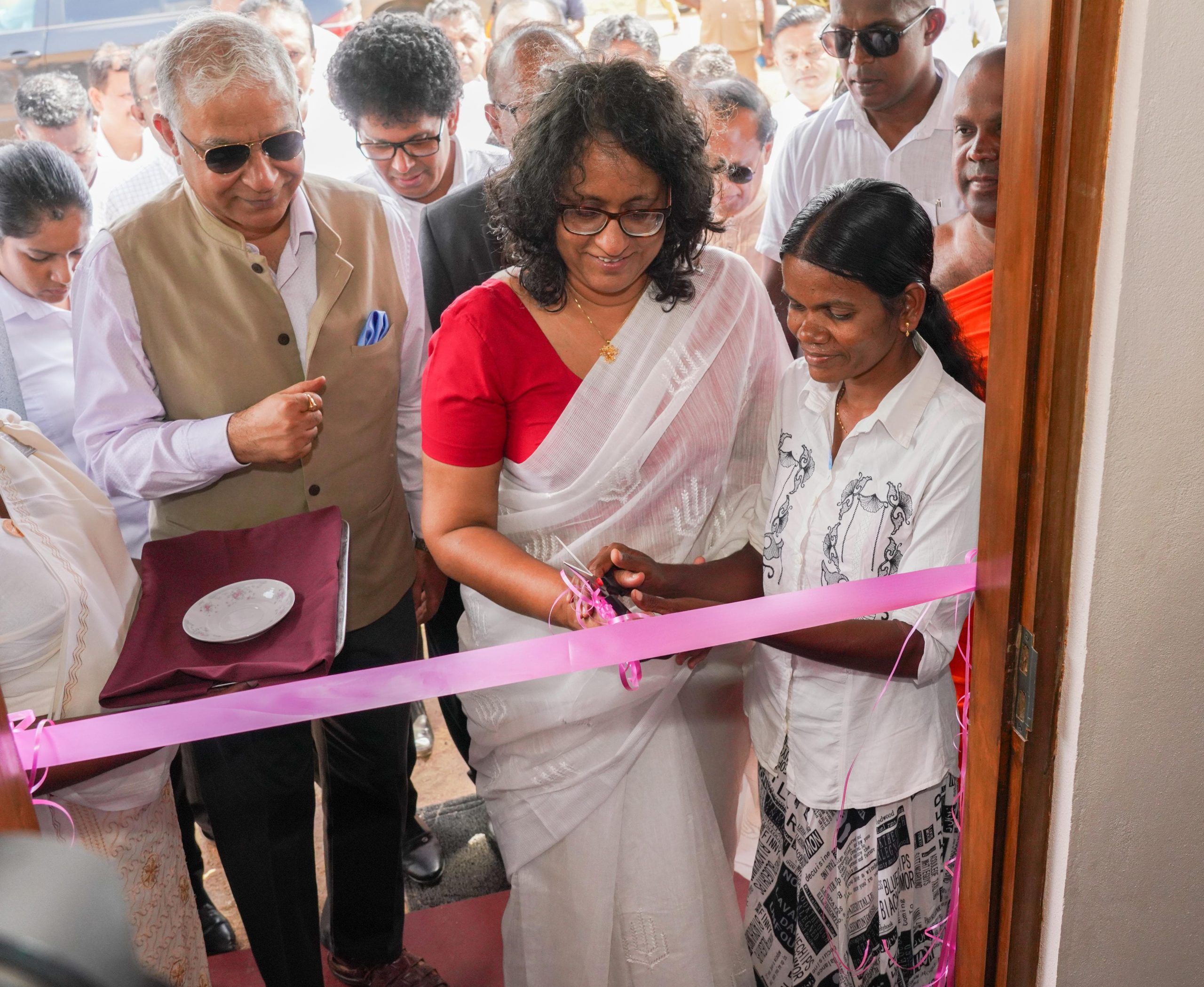 115 houses constructed under the project and the Prime Minister unveiled the commemorative plaque and symbolically handed over the keys to three selected recipients. The Prime Minister also planted a sapling within the temple grounds.