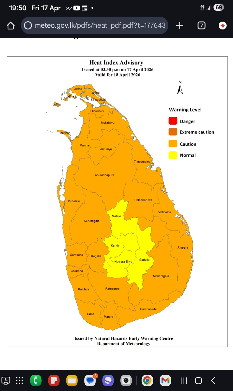 Latest News5 days agoHeat index likely to increase up to ‘Caution level’ at some places in the Northern, North-central, North-western, Western, Sabaragamuwa, Southern and Eastern provinces and Monaragala district