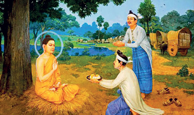 There are two accounts of what the Buddha ate just before or just after his awakening. According to the first of these, a young woman named Sujata saw Gotama sitting at the foot of the Bodhi Tree and thinking that maybe he was a tree deva or some other kind of divine being, rushed home to prepare an offering for him. As everyone knows, the dish she prepared was milk rice. Most Sinhalese assume that what they call kiribath cooked in coconut milk is the same as the dish Sujata offered to the Buddha. This is not correct.