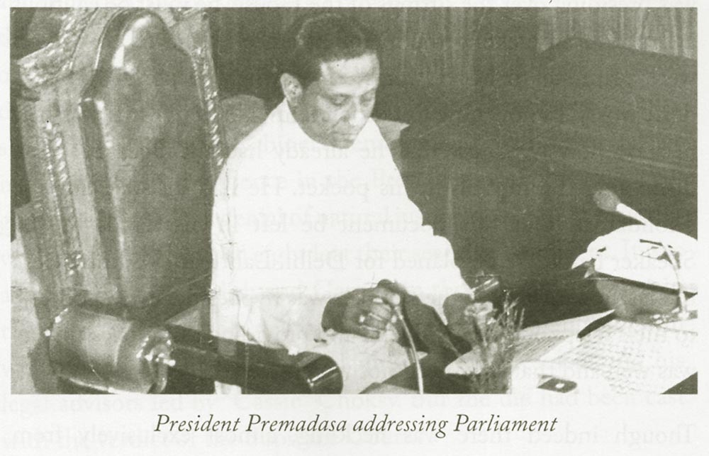 By emphasizing the need to get the IPKF out of Sri Lanka he had taken over the main demand of the SLFP and the JVP. Moreover given his opposition to Indian policies from the time of JRJ he had gained credibility among the Sinhala voters who had earlier backed the SLFP. Unlike in the case of JRJ, Premadasa became a favourite of the Sangha. He took great pains to attend to their everyday needs and wean them away from their natural ally – the SLFP.
