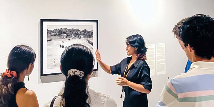 The MMCA Sri Lanka’s VEs play a pivotal role as the first points of contact between visitors and the museum, where they enable visitors to learn about and engage with the artworks on view, provide context, and introduce close-looking techniques through conversations, tours, and educational activities for all age groups and levels. The VEs also support the care of the exhibits in the exhibition, observe health and safety protocols, and assist with the setup of its weekly public programmes.