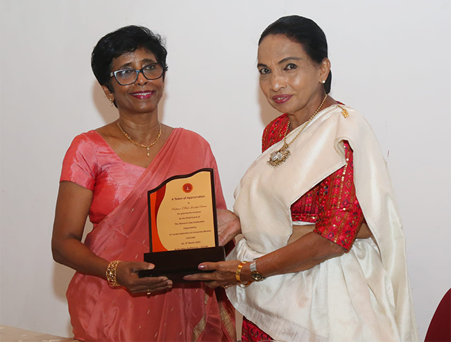 The Sri Lanka Federation of University Women (SLFUW), under its President Colonel Dr. Udula Krishnaratne, celebrated International Women’s Day on Saturday, 4th March, at its Headquarters in Kitulwatte Road, Colombo. The Chief Guest was the illustrious Professor Emeritus Jennifer Perera, famed Microbiologist and former Dean of the Faculty of Medicine, University of Colombo, who addressed the gathering on ‘ The importance of Women’s Health in Economic Development. Professor Emeritus Takshala Serasinghe, the keynote Speaker, spoke on ‘DigitAll:Innovation and Technology for Gender Equality’.