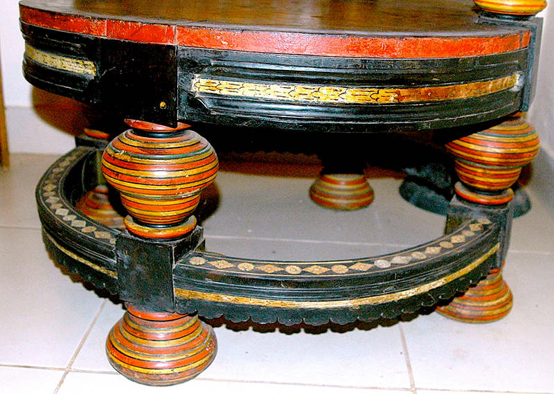 Arranged chronologically from Stone and Brick furniture (3 B.C. to 12C.E.), Representational Furniture from 12 CE to 16 C.E. and Colonial furniture from 16 C.E. onwards, the text and the images combine well, a happy result of the author’s Ph.D thesis and her experience in design. She has visited many sites and include include stone beds and seats used in monastic settings found in Anuradhapura, Mihintale, Sigiriya, and Polonnaruwa. ​The Representational Furniture section includes wall paintings, wooden pillars, painted cloth and wooden chests as well as furniture influenced by South Indian and European styles such as the Tivamka Pilimage wall paintings in Polonnaruwa providing early evidence of courtly furniture styles. ​ The Wooden Furniture of Kandy chapter details the influences by traditional Sri Lankan, South Indian, and European designs often featuring intricate carvings, lacquer work, and hybrid styles categorized into four types: indigenous, traditional, derivative, and hybrid forms.
