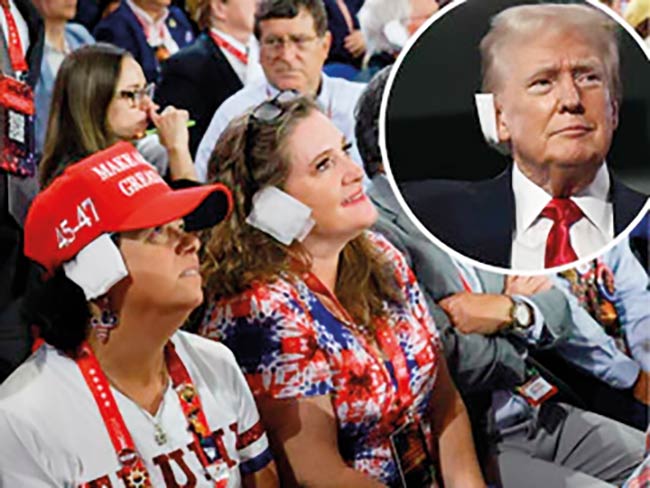 At the convention in Milwaukee Trump has been appearing with a square bandage covering the top of his bloodied right ear. The bandage has caught on as a symbolic fashion piece among convention delegates. Master of marketing, Trump has now introduced the square bandage as a companion to his MAGA cap to enthuse Americans and expand their purchases. In his acceptance speech on Thursday night, Trump started solemn and subdued narrating his close encounter with death. He thanked and vowed his faith in God. A providential second term, he saw, beckoning.