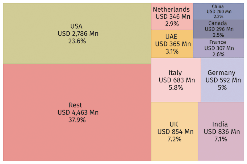Elected for a second term, he is once again proposing significant tariff increases as trade policy measures. These potential hanges in US tariff policies will have a direct impact on Sri Lanka’s export industries. The US is the top individual export destination of Sri Lanka, accounting for 23.6% of its total exports (Figure 1).Market share of export destinations of Sri Lanka: 2023
