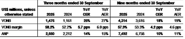 AIA Group Limited (the Company) announces 25 per cent growth in value of new business (VONB) on constant exchange rates (CER) for the third quarter ended 30 September 2025.