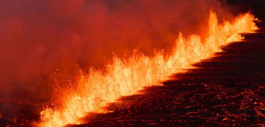 According to Iceland’s meteorological office, magma breaking through the Earth’s crust created a large fissure estimated to be between 0.7 and 1km (0.4 to 0.6 miles) long.