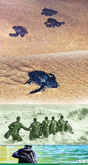 Sri Lanka Coast Guard (SLCG) protects sea turtles. It protects their breeding sites and eggs and ensure that baby sea turtles find their way to the sea safely. It maintains records of sea turtles it releases into the sea. In 2017, it released 5,440 baby sea turtles from Wellawatta, Hikkaduwa and Mirissa. From February to June, mother sea turtles come even to Wellawatte and Galle Face beaches to lay their eggs. Those detected by the SLCG beach patrols are protected day and night for next 60-65 days until they are hatched and babies crawl into sea.