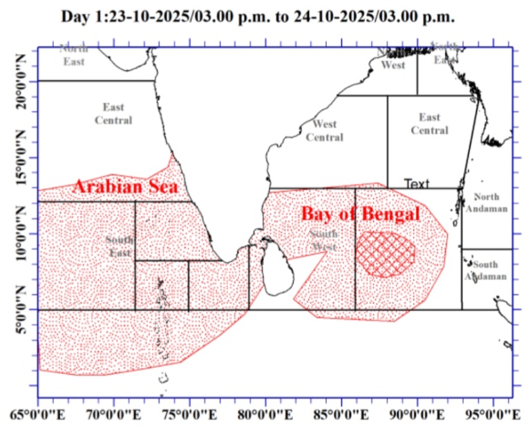 The Marine Forecasting Division, of the National Meteorological Centre has issued a warning for strong winds and rough seas, at 03.00 p.m. on 23 October 2025. The warning is effective for the next three days.