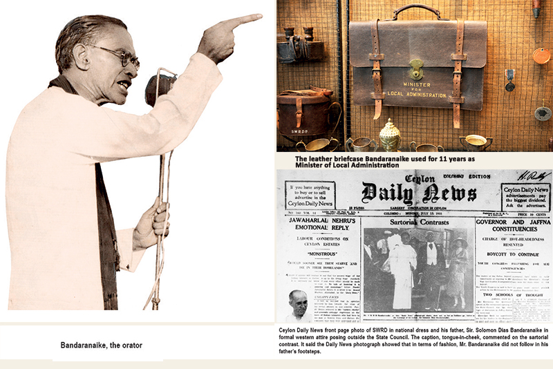 S. W. R. D. Bandaranaike first rose to island-wide prominence when he entered the First State Council of Ceylon in 1931 as Member for Veyangoda, elected unopposed. A famous photograph published in The Ceylon Daily News showed him in national dress beside his father, Sir Solomon Dias Bandaranaike, clad in Edwardian style, standing at the foot of the State Council building. It was not admiration but ridicule. From the beginning, he stood between two worlds.