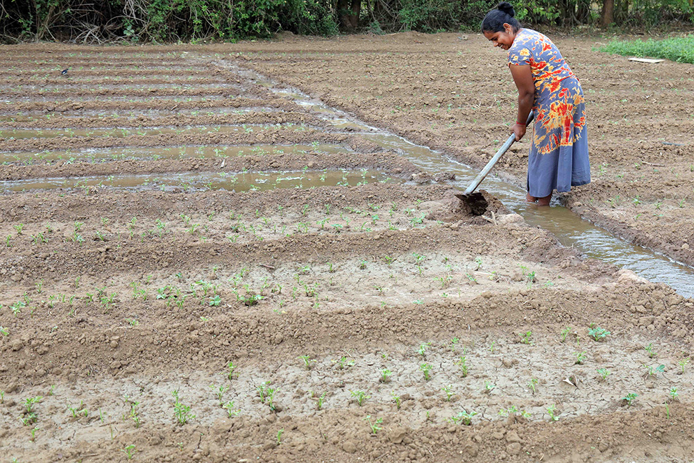 - A local farmer utilszes water from the Iranamadu project to nourish her crops