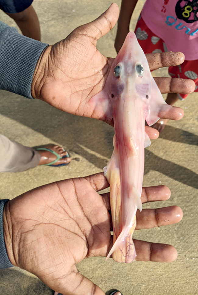 Wedgefishes and guitarfishes represent one of the most threatened groups of marine vertebrates globally. They rest on mud, sand, or rough bottoms and feed on benthic invertebrates, crustaceans, and small bottom-dwelling fish, playing a crucial role in maintaining the trophic functioning of soft-sediment ecosystems. Their distinctive appearance, coastal distribution, and shark-like bodies make them extremely vulnerable to capture in different types of fisheries, especially gillnets used in shallow waters. Slow growth, late maturity, and low reproductive rate further limit their ability to recover from exploitation and make them even more vulnerable, making every new pup precious.
