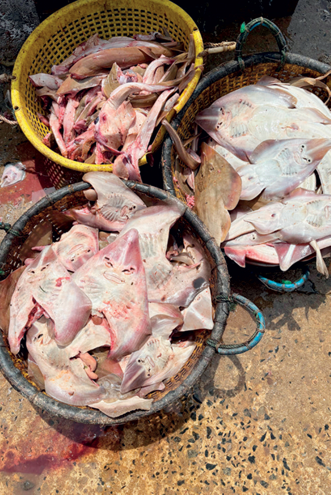 - Pile of guitarfish being processed in the market for dry fish production