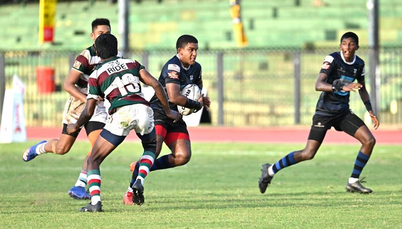 Wesley defused a spirited charge by fast improving D.S. Senanayake College as they recorded a close 27-20 win in their match played at the Sugathadasa Stadium. The winners collected their points through four tries, two conversions and a penalty while the ‘Dons’ responded with three tries, a conversion and a field goal. Wesley led 27-13 at half time.